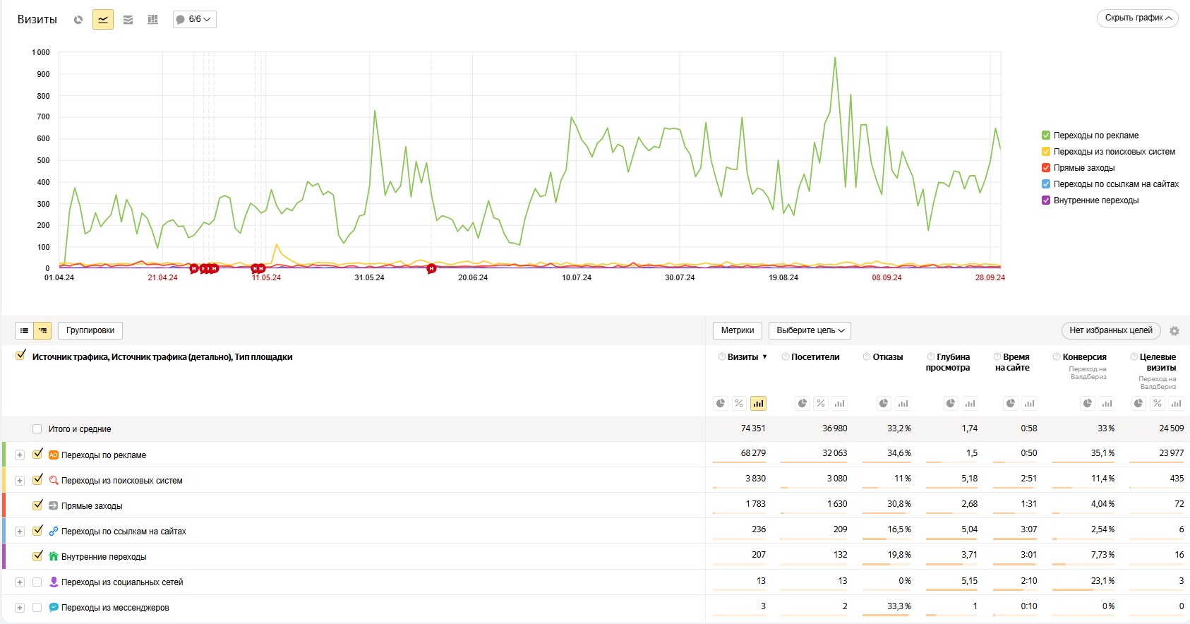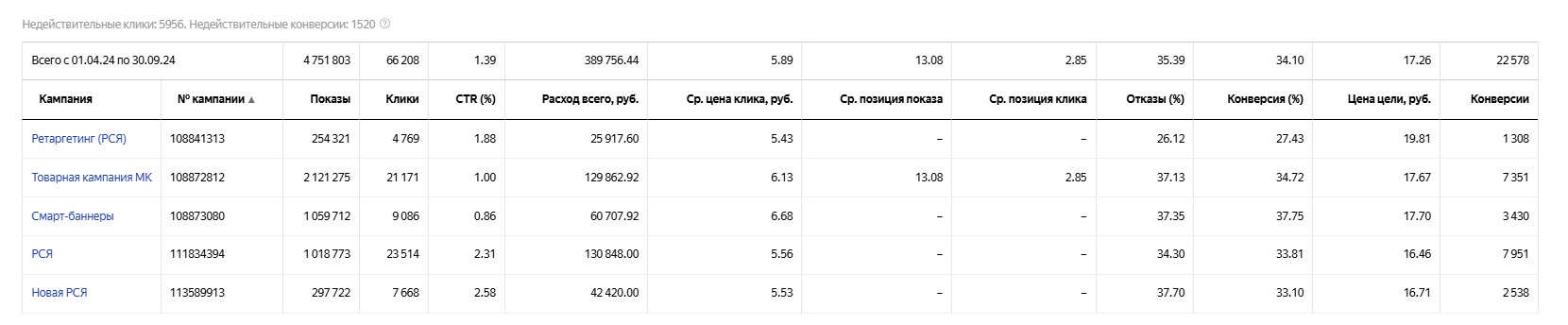 Запустили рекламные кампании Яндекс Поиск, РСЯ, Мастер кампаний, смарт-баннер, ретаргетинг, с оплатой за конверсию, подключили Яндекс Метрику и настроили цели для отслеживания конверсий.